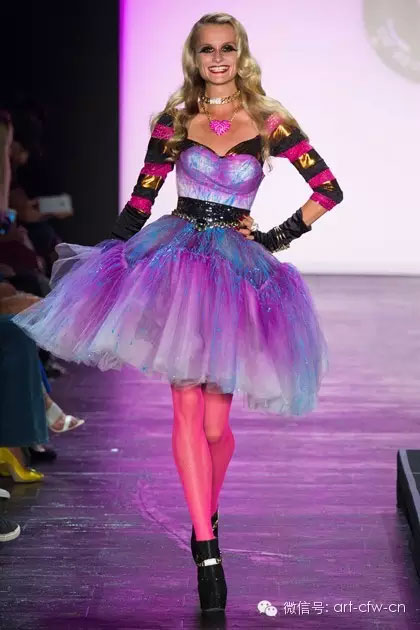 Betsey Johnson于纽约时装周发布2016春夏系列,本季系列就像一幅设计师随意泼洒的热情抽象画作,明艳的撞色无处不在,画布般的蓬蓬裙与渔网上衣混搭在一起,天马行空的图案充满活力,性感热烈。