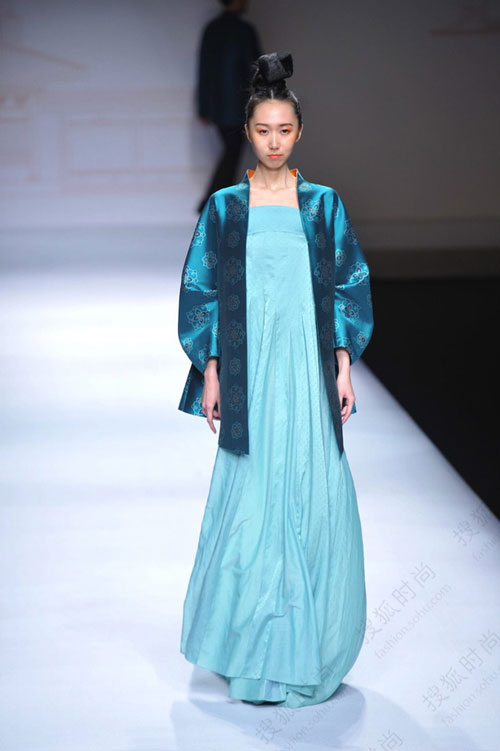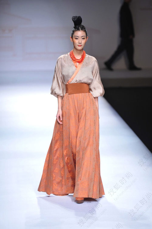 楚和听香2016春夏大秀,灵感来自敦煌莫高窟画上的唐代供养人服饰,高腰襦裙、大袖短袄等经典唐代服制被保留,加以现代、简约的时尚设计手法,更加唯美。